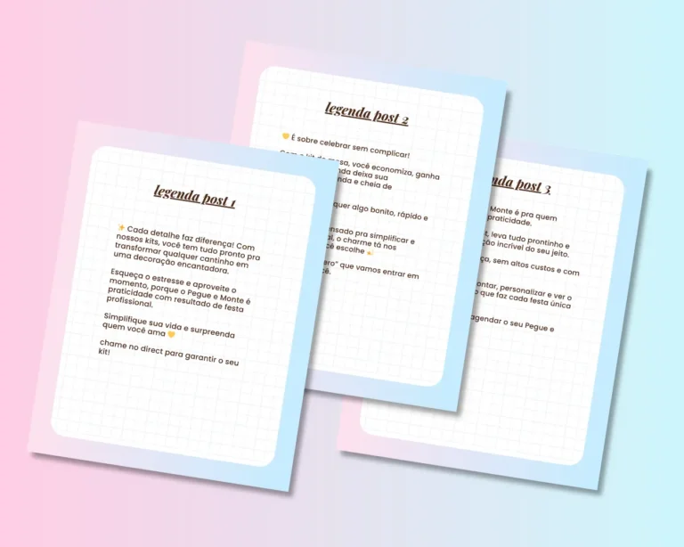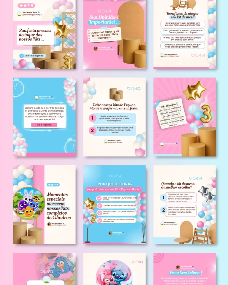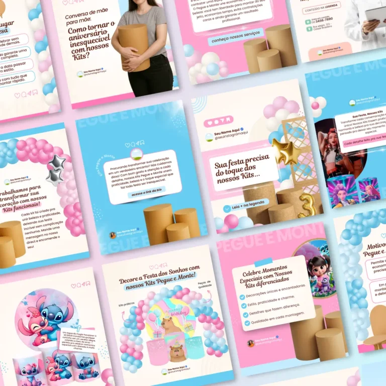 Com nosso pacote você vai ter +50 ARTES, POSTS PRONTOS e LEGENDAS para divulgar seu trabalho de Pegue e Monte no instagram