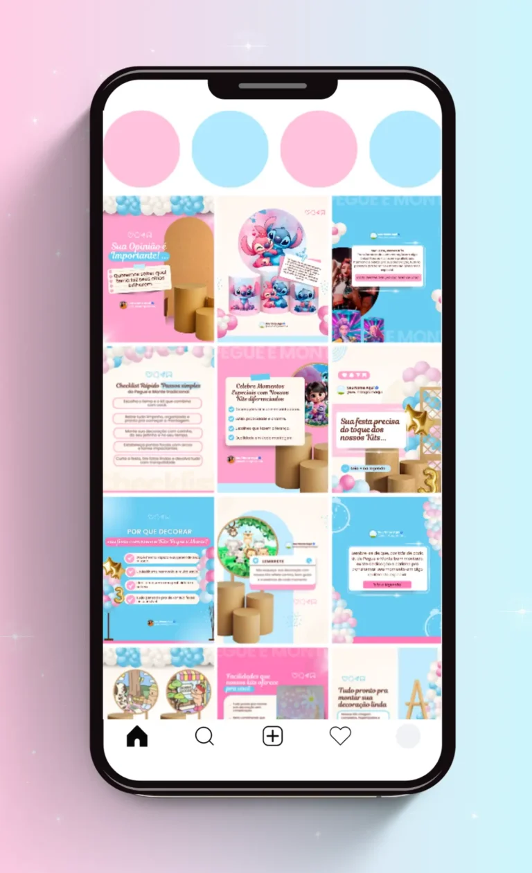 50 posts também no formato Retrato para o novo modelo de Feed para divulgar seu perfil, compartilhar informações sobre festas e pegue e monte, para atrair mais clientes que precisam de você